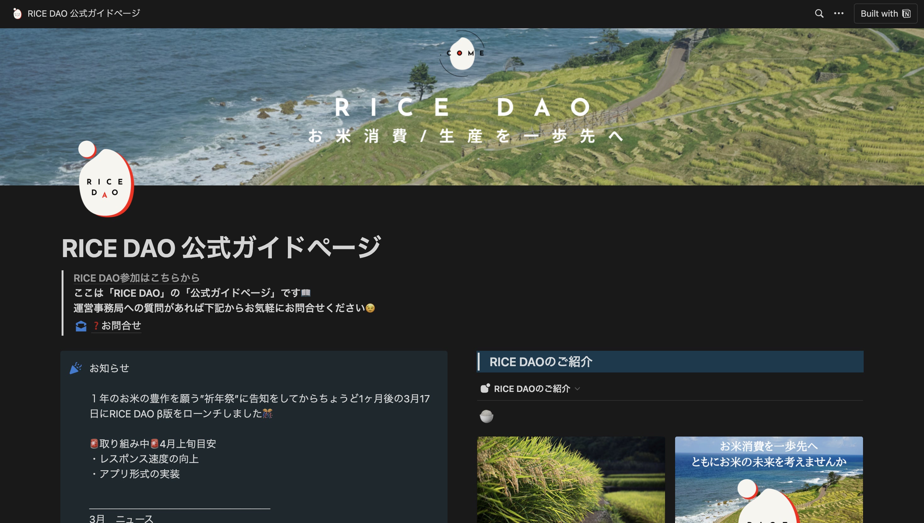 先日3月17日、RICE DAOの公式ガイドページをNotion上に開設いたしました!
