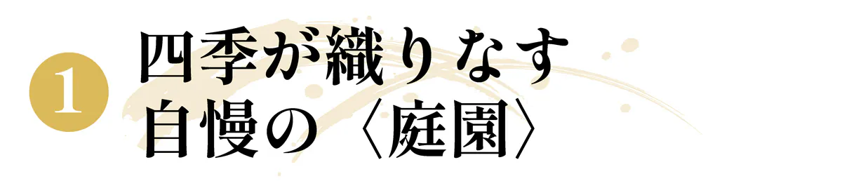 小川の流れに沿って庭石と草木を配し、四季折々の色合いを魅せる庭園。