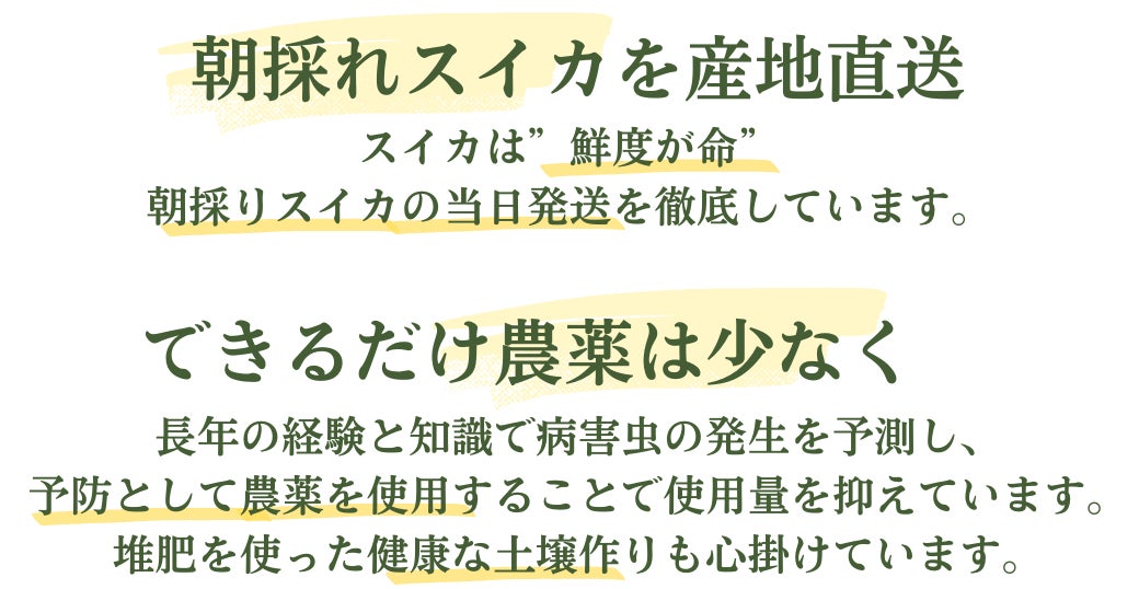 夫婦二人三脚で40年「どこよりも美味しいスイカ」を目指し、絶えまぬ努力を続けてきました。そんな両親の作るスイカは絶品で、これはどうにかブランディングできないかと娘の私が販売を手伝い、2年前から「すず丸スイカ」として個人販売をスタート致しました!