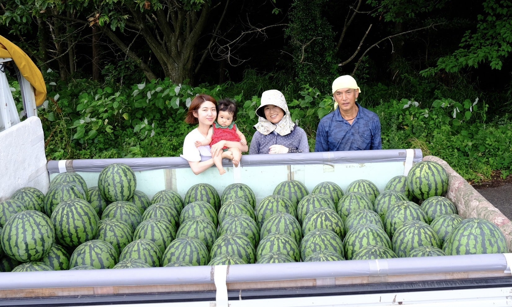 ➤すずちゃんの両親。夫婦二人三脚スイカを育てて40年。父のスイカへの情熱はだれにも負けません!