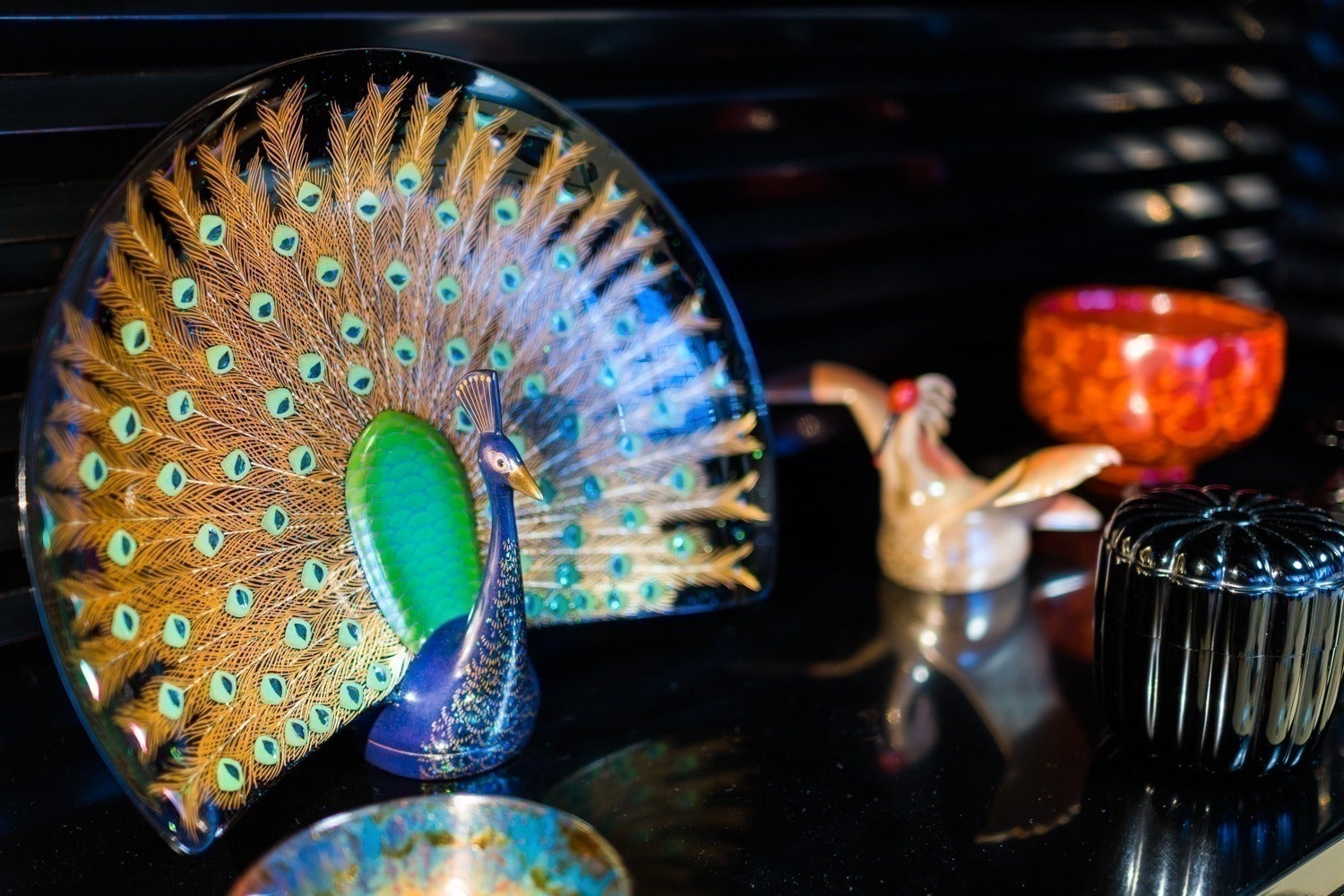 例えば、漆器の最終段階で、デザイン/模様を描きます。その上にさらに黒漆を塗ると、中に描いたデザインは見えなくなってしまいますが、漆は年数を重ねると、だんだんと薄くなり、琥珀色に近づいていくので、何層も下に描いたデザインが、薄っすらと、鮮やかに浮かび上がってくるのです。