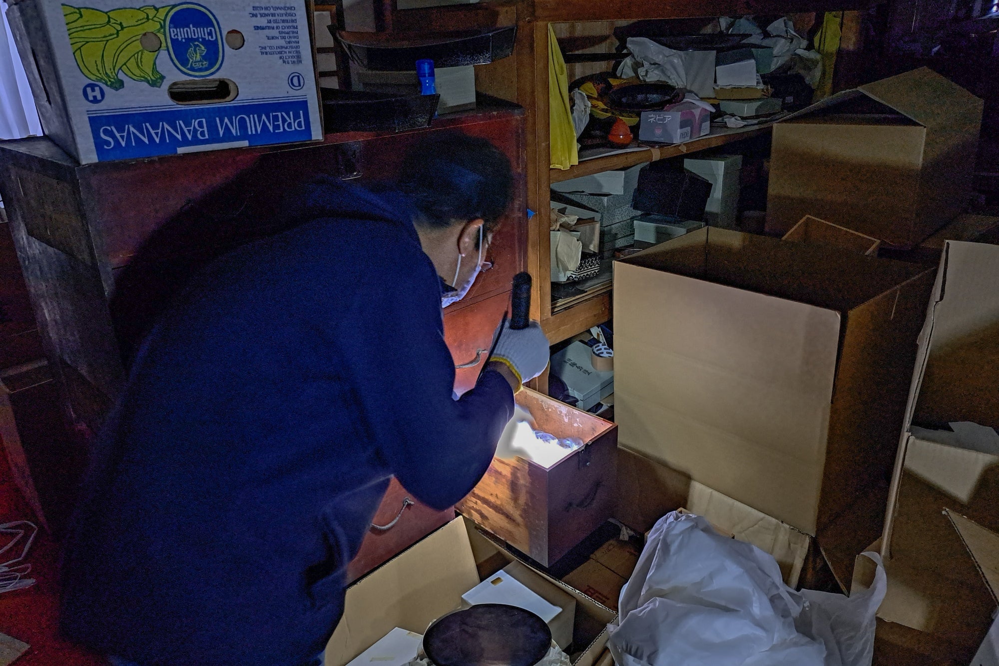 大切な漆ハケを捜索するために倉庫の最深部に入ってタンスの中へ。