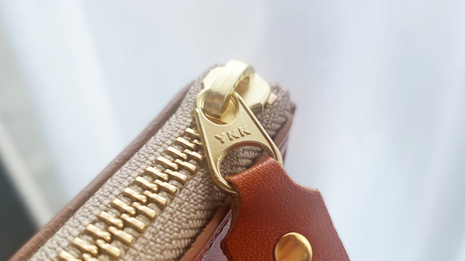 ファスナーはYKK社のファスナーを使用。また、引手も引きやすいように革パーツを施しました。