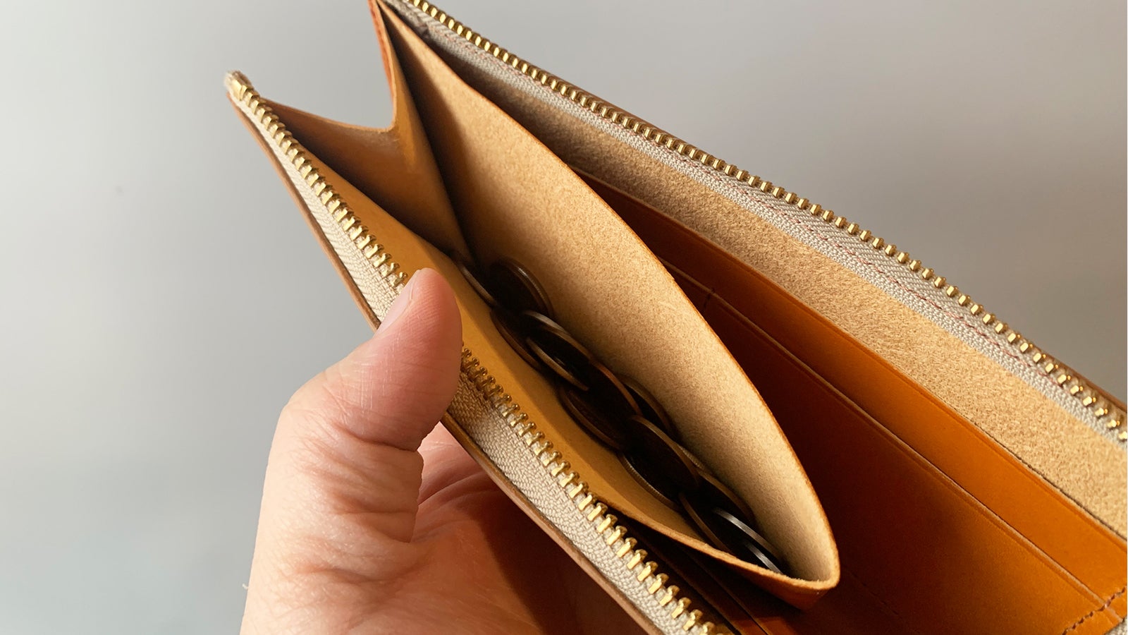 小銭入れのスペースを大きくする事でゴワつきを抑えスムーズに取り出せるようになっています。