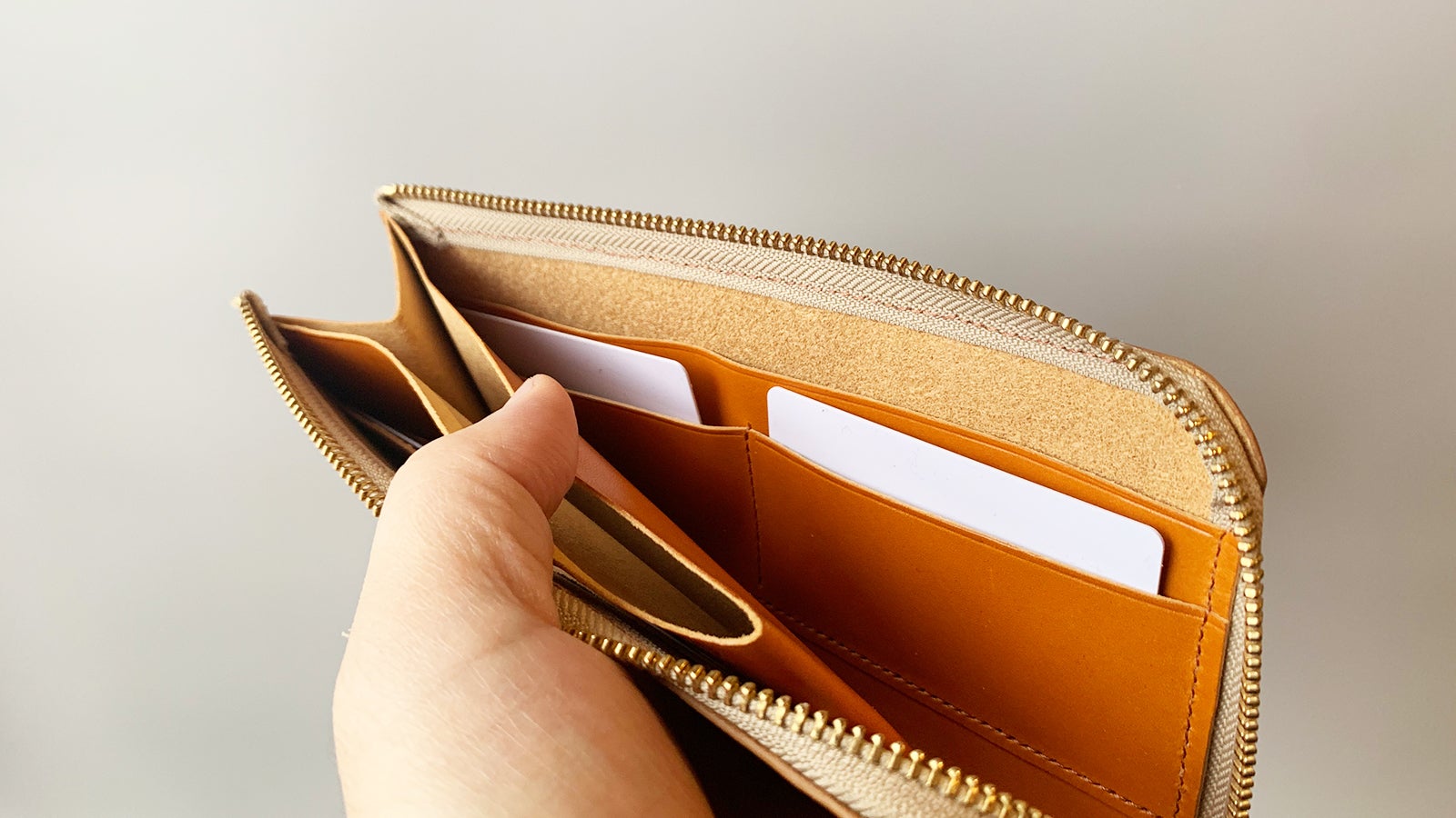 このマチ無しタイプの場合、ファスナーを開けた時に窮屈な為、カードや小銭が取り出しずらくなってしまいます。特に奥側のカードは引っ掛かる事もあるので、カードの出し入れの際にストレスになります。