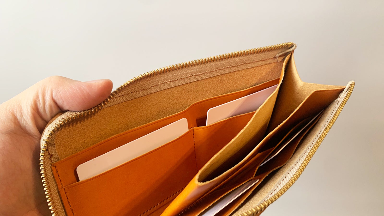 L字型のラウンドファスナー長財布はマチ無しタイプが殆どです。