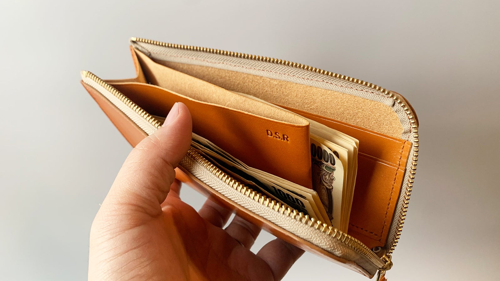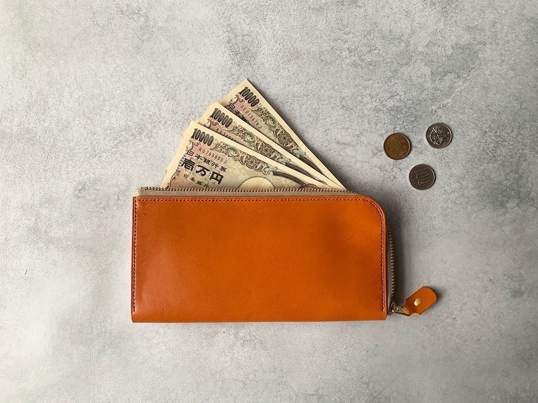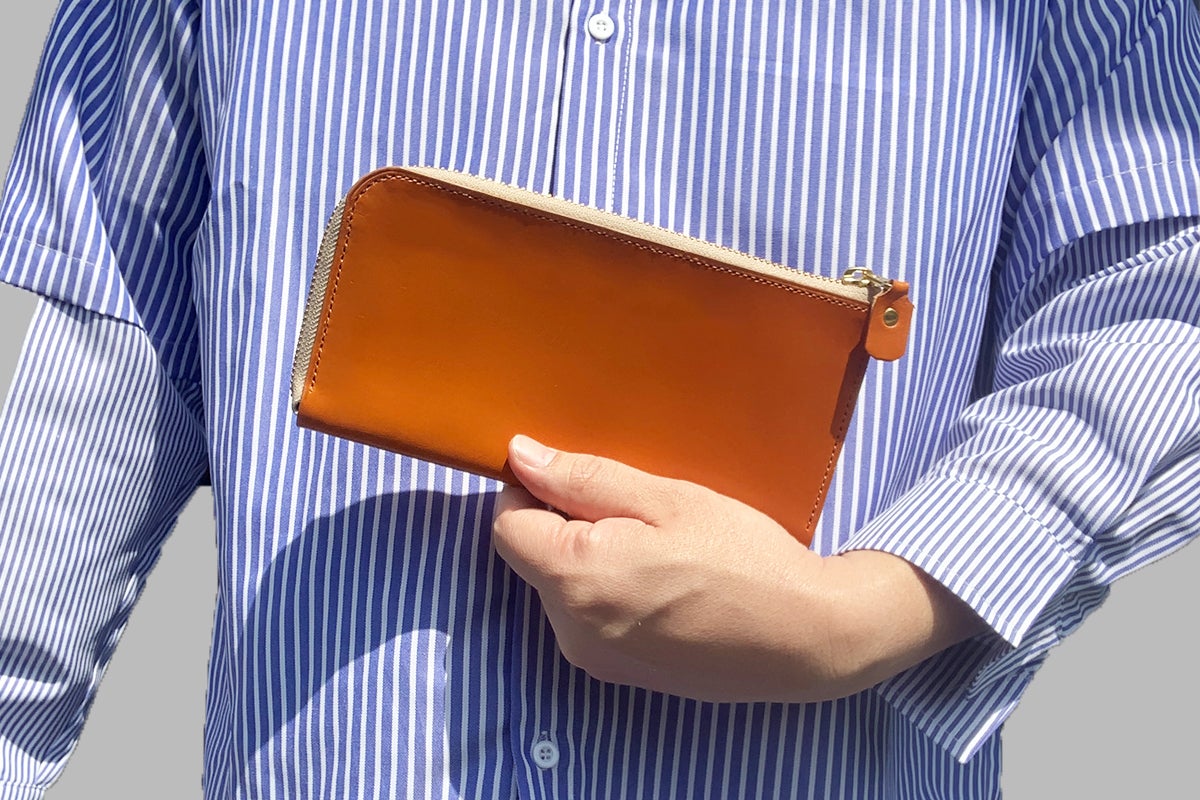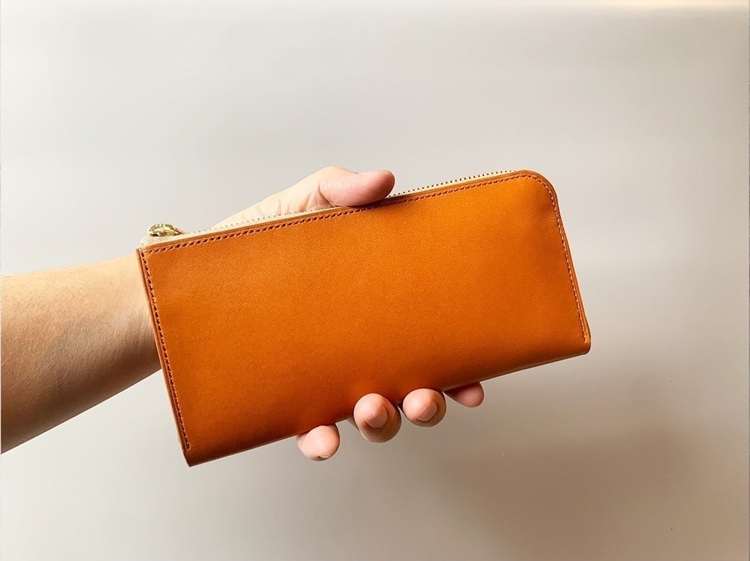 この度先行販売させて頂くのはL字型タイプのラウンドファスナーマチ付き長財布です。