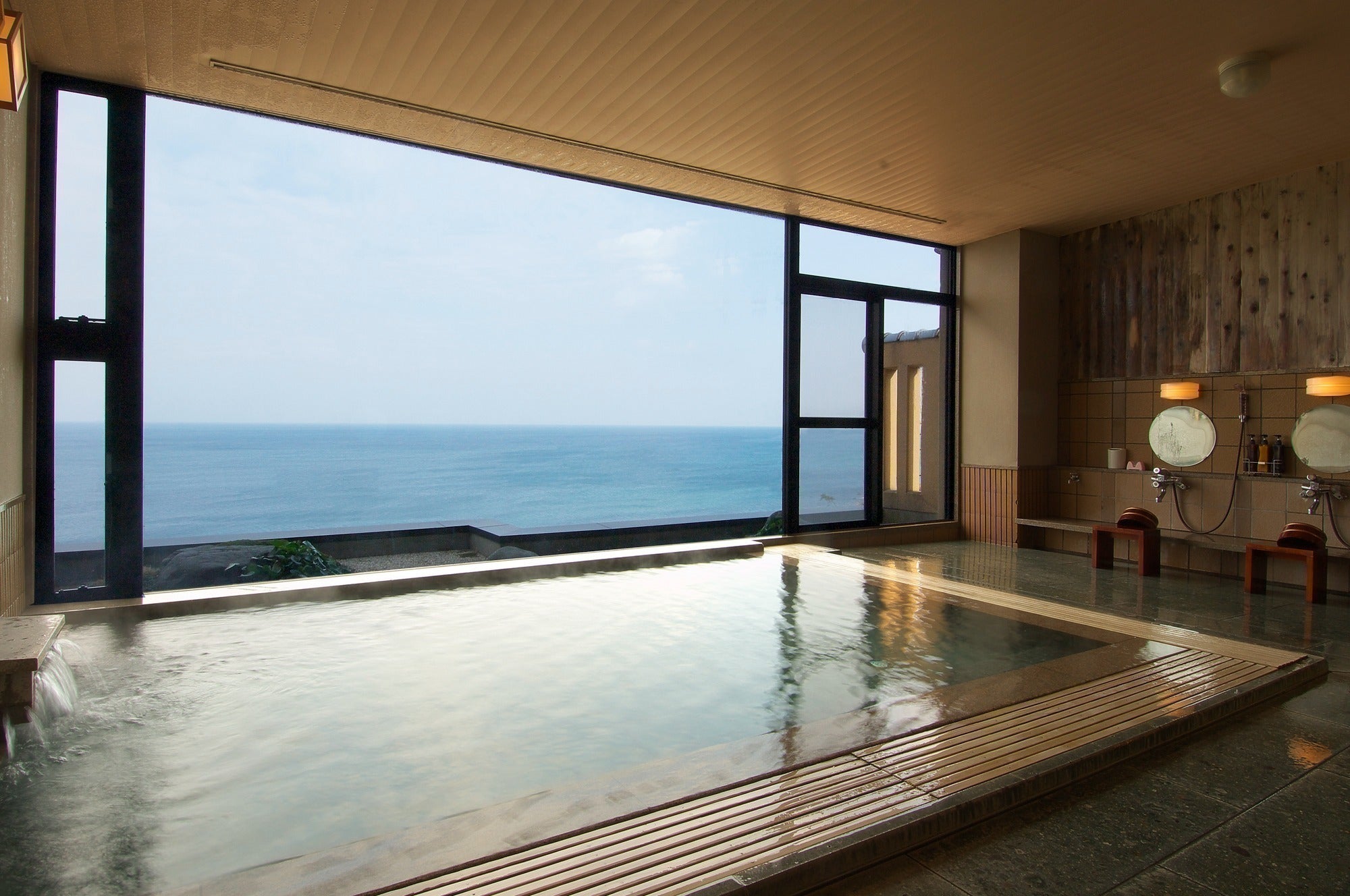 輪島市街地から東へ約3kmの「寝豚」の地から自噴するねぶた温泉は、奇跡の湯と呼ばれた恵まれた泉質の温泉です。pH10.2というアルカリ性の湯は肌に優しく、化粧水に浸かっているかのような感覚で、肌荒れや手足及び肩の凝り、冷え性、運動機能の回復に多くの効果があるとされています。昭和元年に創業して以来、「ねぶたの湯」として地元民はもちろん、近隣の町からも多くの人々が訪れる人気の温泉でした。