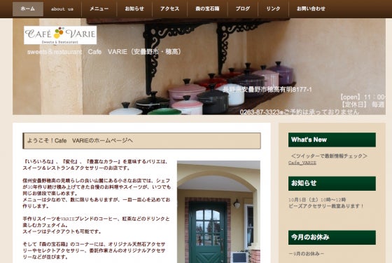 Cafe VARIEさんは、信州安曇野穂高の見晴らしの良い山麓にある、スイーツ&レストラン&アクセサリーのお店です。