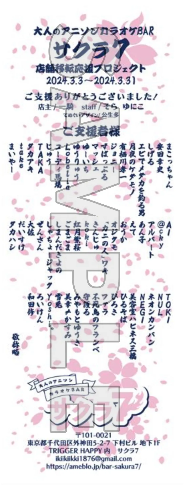 上野・大人のアニソンカラオケBAR「サクラ7」は、2021年7月7日にOPENしまして、火曜日・金曜日の週2日営業の間借りでやっているお店です。