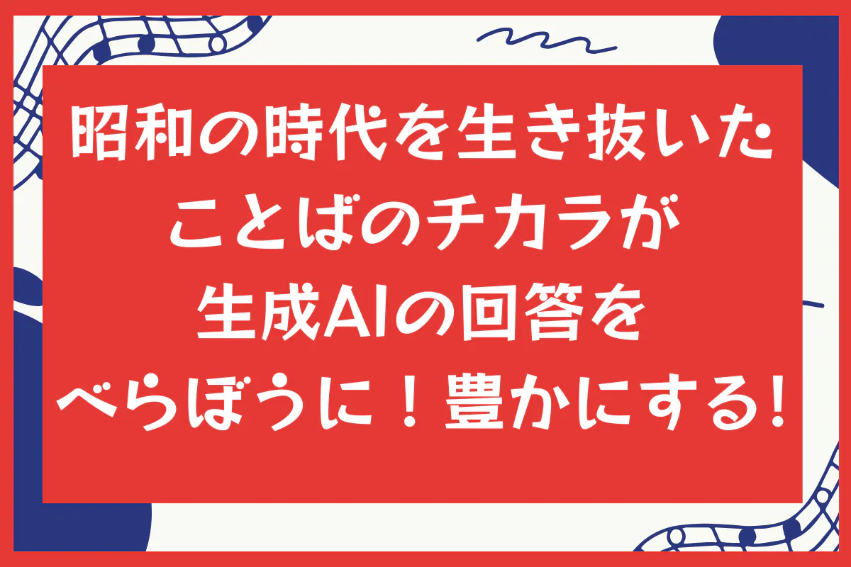 このプロジェクトは、昭和の時代を力強く生きてこられた皆様の、心に秘めた豊かな物語や言葉を、最新の音楽AIの力を借りて「歌」として形にするお手伝いをしたい、という強い思いから生まれました。音楽経験がなくても、楽譜が読めなくても大丈夫。「あなたの言葉」が、感動的なメロディーになる。これは、まさに人生経験豊富な昭和世代だからこそできる、素晴らしい創造だと信じています。