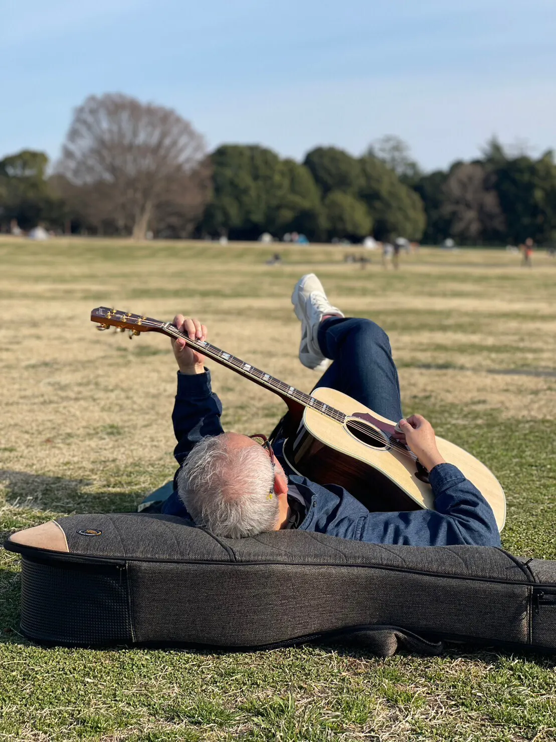 追伸:プロジェクトの合間には、緑と青空の公園でのんびり演奏しながら鋭気を養いながら・・思いの実現のために、同世代の皆さんと新しい音楽の体験を拡げるべく、楽しみながら精進します!
