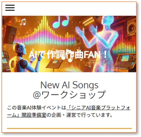 2025/08/03 13:38活動報告をご覧いただき、ありがとうございます。クラファンが成立し、いよいよ、まずは千葉県内から「AIで作詞作曲体験サロン」的なイベントがはじまります。海浜幕張エリアで開催(会員限定企画)●幕張ベイパークを管理するB-pam様とのコラボが実現しました。●幕張ベイパークで開催される「盆踊り」でオリジナルの音頭をつくりたい。というご相談をいただきました。●それでは、住民参加型で、「音楽AIでつくるオリジナル・ベイパーク音頭コンテスト」みたいなものはどうでしょうか?と企画提案●OK!やりましょう!ということで、先日、告知がスタートしました。この講座に参加できるのは、B-pam会員様(幕張ベイパークの住民の皆さま中心)となりますが、まずはご報告です!松戸市常盤平で開催松戸市常盤平の西友 常盤平店5階にある「はれの日サロン」さんでの開催のご紹介です。:::: はれの日サロンとは(ホームページから) :::~地域の皆さまにとって毎日笑顔いっぱいの“はれの日”であるために~第二の我が家、多世代交流、町の環境づくりや持続可能な社会を創造し、地域全体が隔て皆が住みたい町づくりを実現できるよう集うサロンです。::::::::::::::※はれの日サロンさんのホームページhttps://harenohi.club/●クラファンのSNS投稿をきっかけとして Yoshihito Koto さんから「三野さんのやりたいことにぴったり」と紹介していただいたのが、はれの日サロンの Yukiko Kato さん。●話はトントンと進み。「昭和世代×AI×音楽」プロジェクトの検証に最適な「地域の高齢者の皆さんの居場所づくり」のコミュニティの「はれの日サロン」さんでの開催が決まりました!●「AIで作詞作曲」教室・無料体験版8月10日(日)、8月24日(日)10:30~11:30※2回とも同じ内容です。もちろん、2回参加いただいてもOKです。●定員10名程度●参加申込の問合せは、はれの日サロンさんに電話でお願い致します。047-313-9198営業時間 10時~17時(水曜日定休)●はれの日サロン〒270-2261千葉県松戸市常盤平3-11-1西友 常盤平店5階●9月、10月の第2・第4日曜日の10時半~11時半開催は、「AIで作詞作曲~誰かに贈る曲、自分のテーマソングをつくろう!」4回コースとして開催します。・受講料1回1,000円・はれの日サロンへの無料登録が必要・カリキュラムは後日公開致します。と、いうことで、常盤平のご近所の皆さんで、ご興味がある方は、まずはお問合せください!::::::::::::::::クラウドファンディング実施を通じて、音楽AIに興味を持ってくださるひとの輪が、どんどん広がって行きます。ありがたいです!以上、ご報告でした。三野 晃一菅 瑛祐子 もっと見る