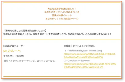 「大切な家族や友達に贈ろう!あなたのオリジナルSONGをつくる 音楽AI体験イベント」