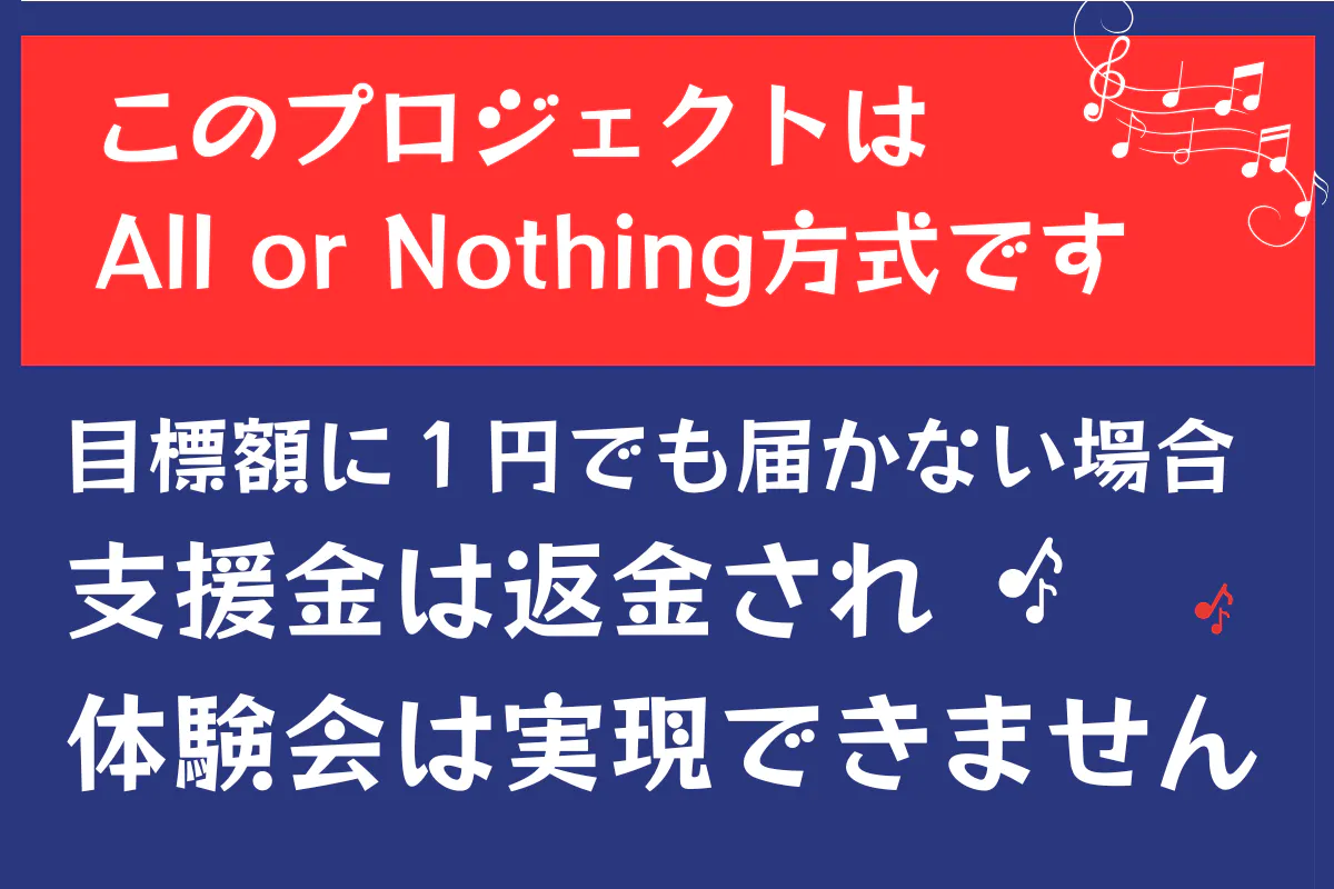 このプロジェクトは計画通りの目標額が集まって、はじめてしっかり実現させることが出来るという「AII or Nothing」方式で行います。目標未達成の場合は支援者が決裁購入した額はそのまま支援者に返金されます。