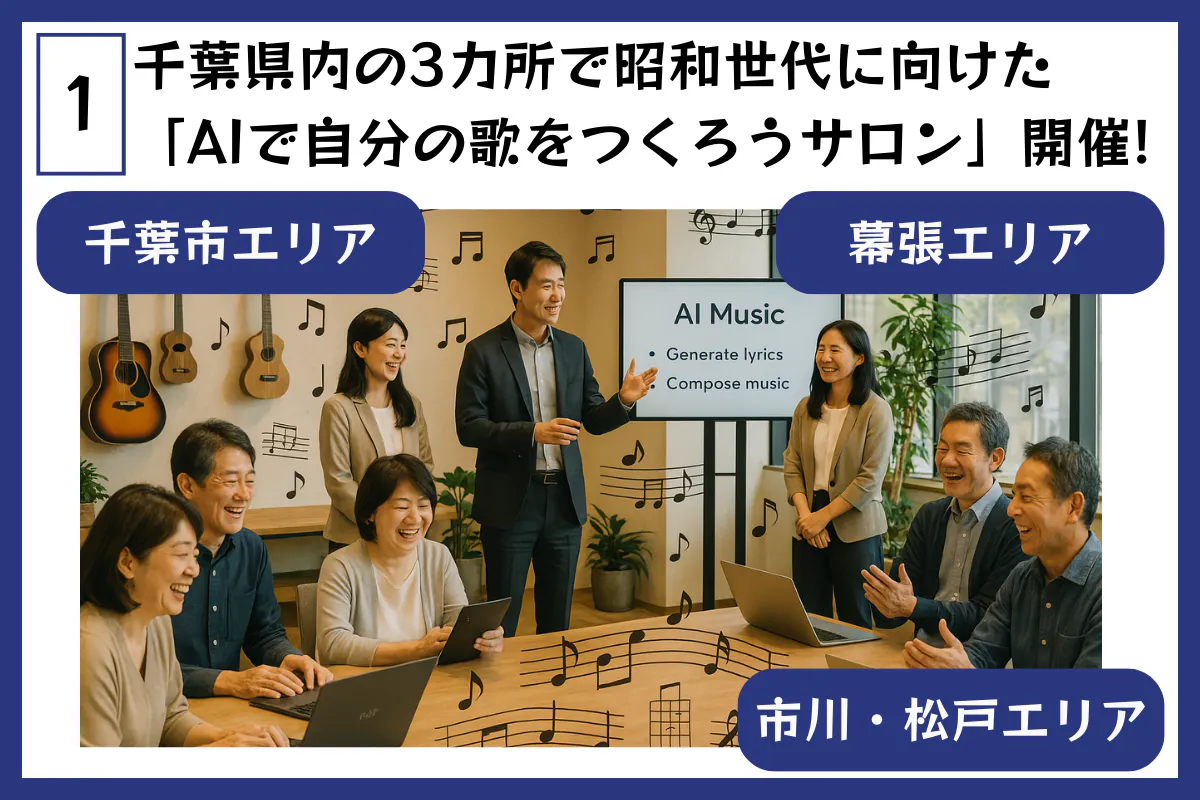 実現させたいことは...まず、千葉県内3カ所で「AIで自分の歌をつくろうサロン」開催です。