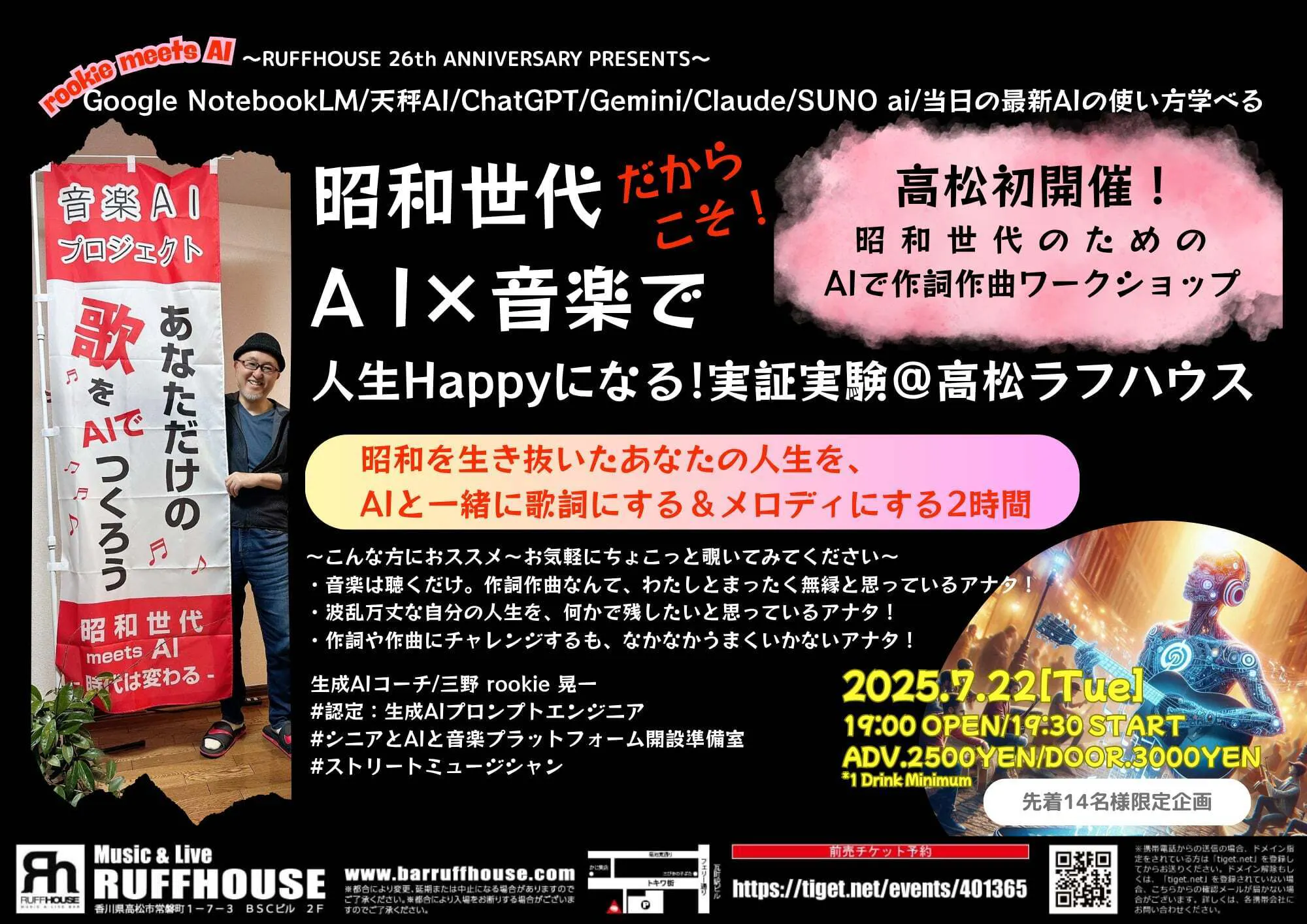 7月22日 香川県高松市のライブハウスで実験的な音楽AIワークショップとライブを開催予定