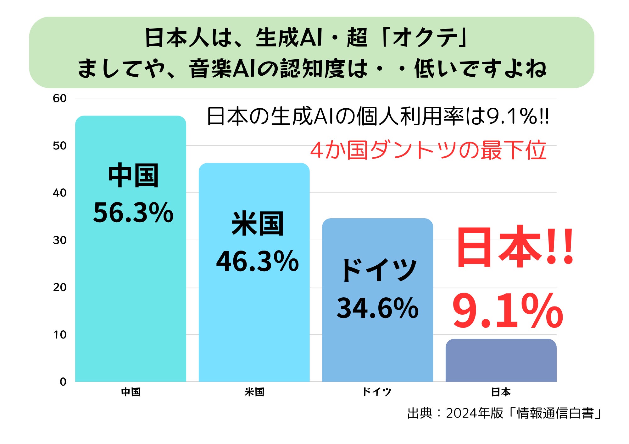 日本の個人利用率は9.1%にとどまっており、比較対象とした中国(56.3%)、米国(46.3%)、ドイツ(34.6%)と比較して大きな開きがあることが判明したんです。