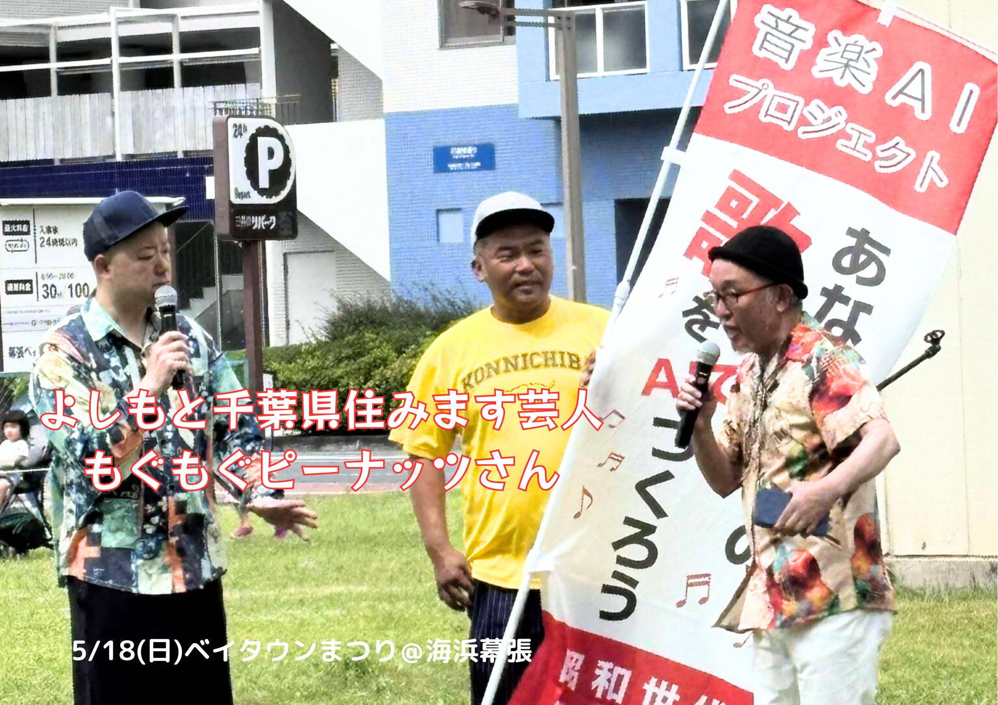 5月18日に幕張ベイタウンまつりでよしもと千葉県住みます芸人「もぐもぐピーナッツ」さんとイベントステージをやって、もぐもぐさんのテーマソングをつくってプレゼントしました。