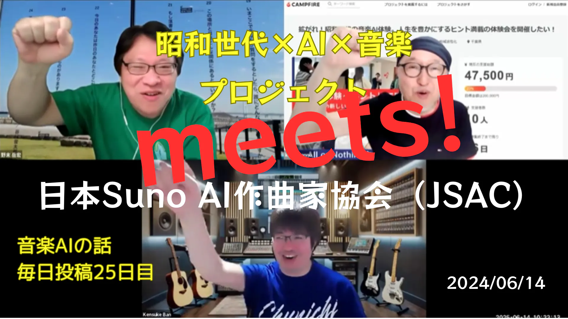 先日、今春に立ち上げられたばかりの「日本Suno AI作曲家協会(JSAC)」の野末様、伴様とオンラインで音楽AI、SUNOについて意見交換や一緒に出来ることはどんなことか、アクションプランをつくるMTGをしました。