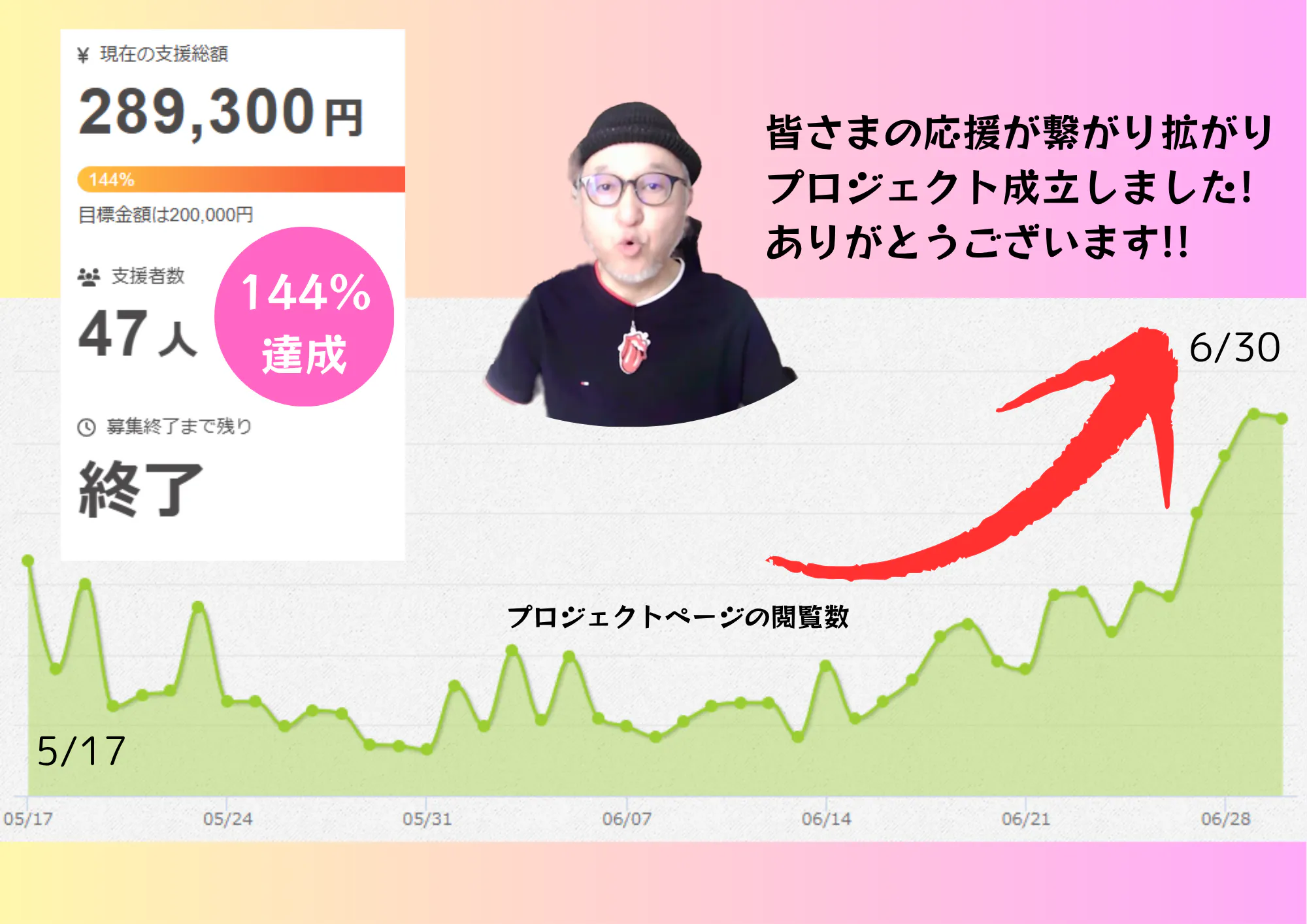 6/30終了期限にて、144%を達成し、プロジェクトが無事成立しました!