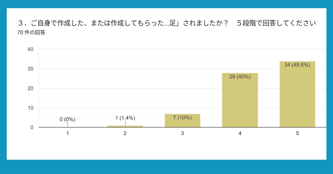 ●ご自身で作成した、または作成してもらった音楽AIに寄る曲を聴いて、どのくらい「満足」されましたか? 5段階で回答してください