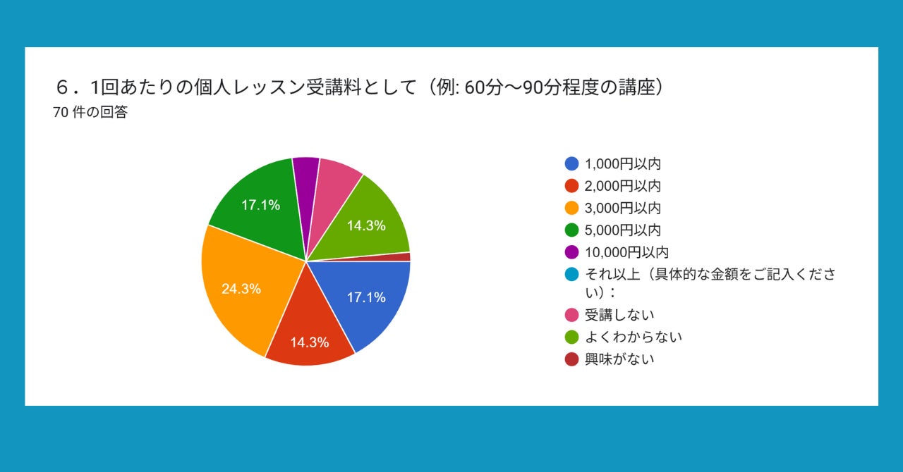 私のプロジェクトは、「音楽AIを楽しみたい」「音楽AIをお金を払っても学びたい」というひとが「そもそも存在するのか」と、「受講料はいくらだったら払いますか?」を調べるテストマーケティングでもありました。