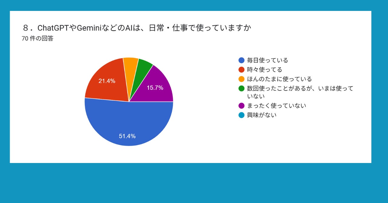 ●(最後に)ChatGPTやGeminiなどのAIは、日常・仕事で使っていますか