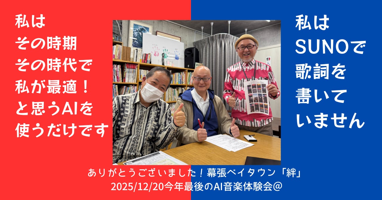 12月23日の企画イベント「カンクラBar」私はコツコツ傾聴とプロンプト書きしてましたが、もちろん支えて、繋がってくれる仲間たちに感謝の気持ちを新たにした、2025年最後の「音楽AI体験会」でした。