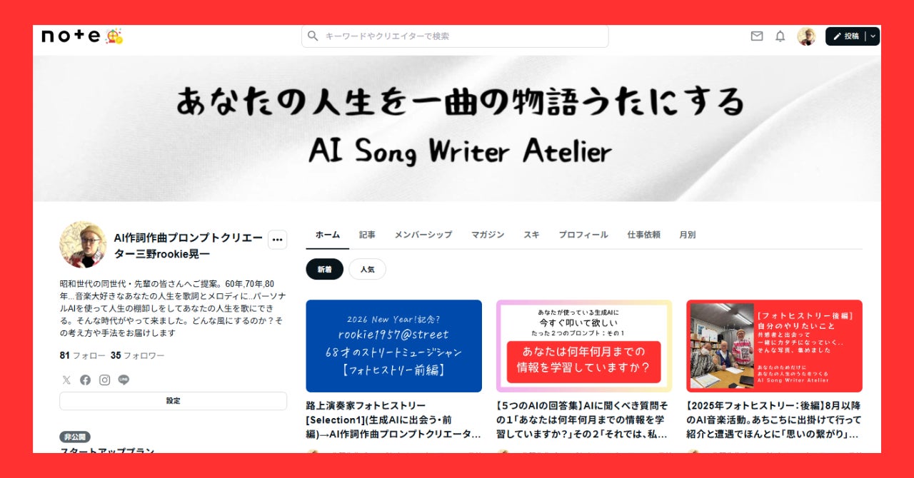AI作詞作曲プロンプトクリエーター 音楽制作ポートフォリオnote