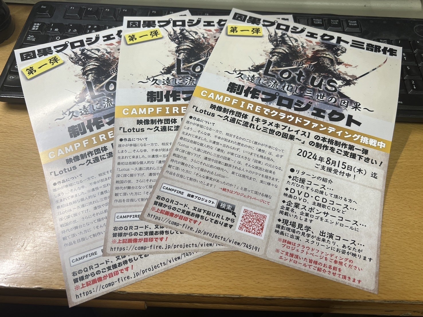 こんにちは!監督の高山です!プロジェクト開始から早3日が経過しました。初日から高額の支援も頂き、お陰様でファーストゴールは達成しましたがここから先も、ネクストゴールに向けての努力を欠かさず、頑張ります!とは言ったものの、今回の結果はキャストさんやスタッフさんが僕以上にチラシを片手にあちこちに告知をして回って頂いてる結果です。「置きチラシでなく、皆さんに手渡しをして欲しい」のお願いに応えて頂き日々、忙しい中で告知・営業活動に精を出して下さってます。本当に、良い方たちとめぐり逢えたなと実感しております。さて、CAMPFIREから、日々デイリーレポートが届きますが数字はハッキリと結果が見えて来るもので、初日からすでに1000人近い方々にプロジェクトを閲覧して頂いております。クラウドファンディングは、最初の1週間が一番ハイペースになるそうなのでこの勢いを止める事無く、次の手を打って行こうと考えております。当プロジェクトに興味を持って頂けましたら...まずは、まずは、”お気に入り登録”をお願いします!引き続き、因果プロジェクト第一弾の応援、ご支援、宜しくお願いします!