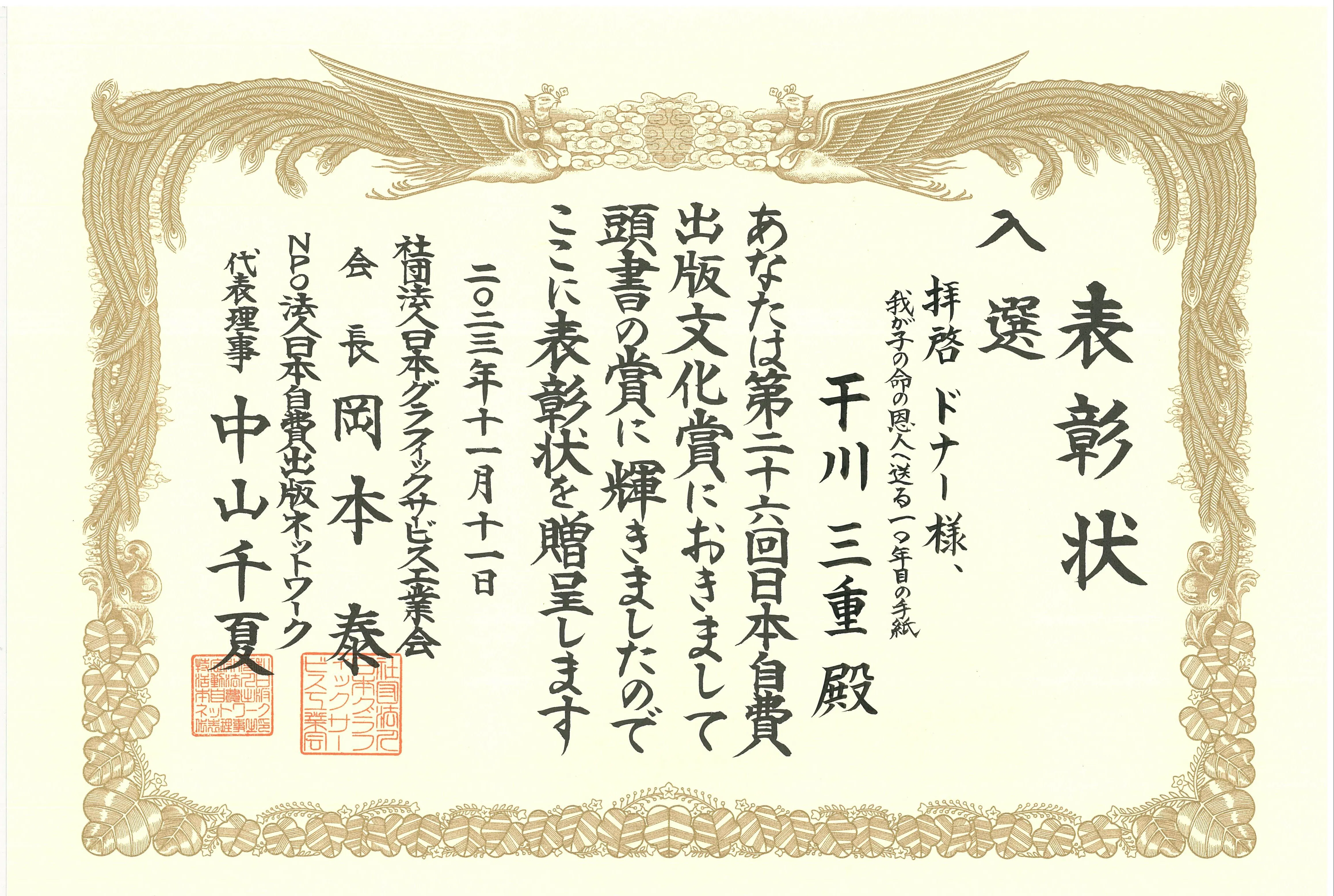 第26回日本自費出版文化賞 個人誌部門 入選!