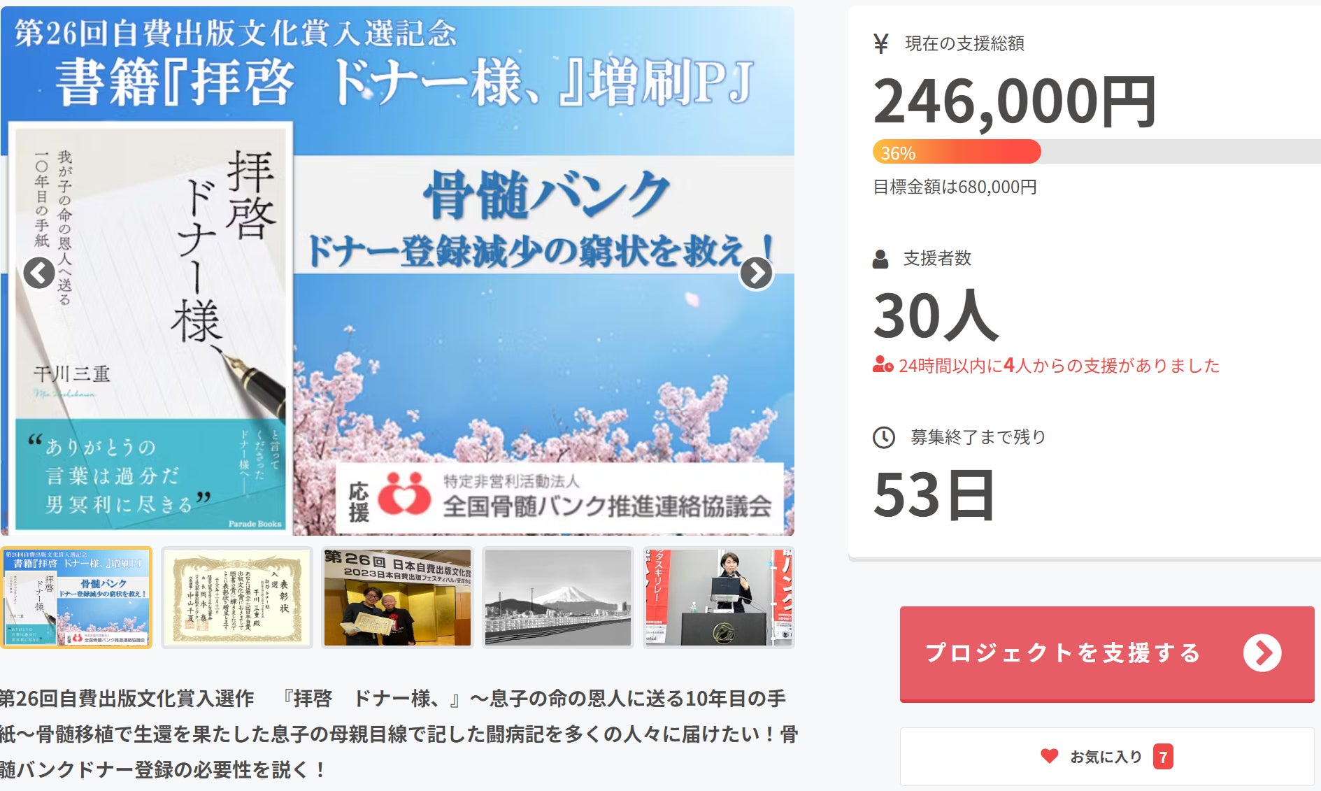 「闘病記増刷 ⇒ 骨髄バンクの必要性周知 ⇒ 骨髄バンクドナー登録者増」
