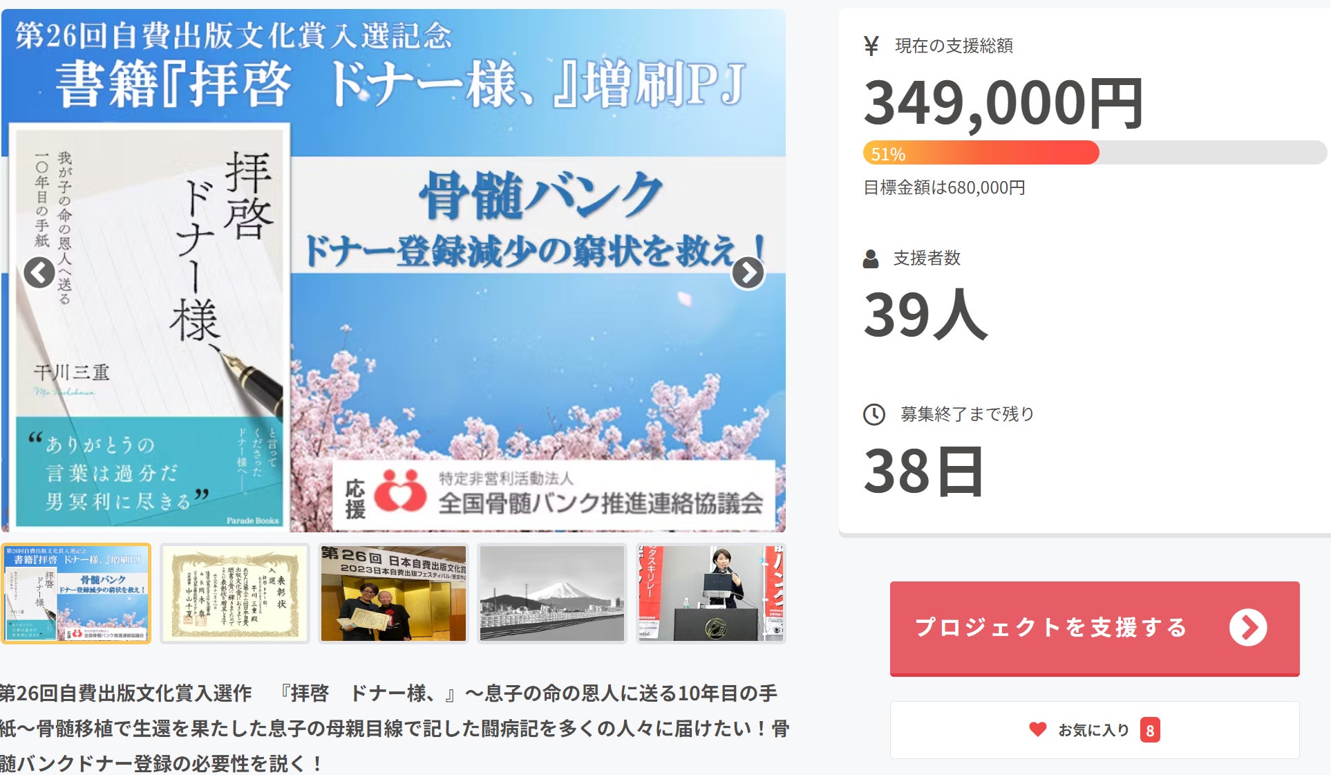 クラウドファンディング開始から3週間で目標額の50%を超えました。