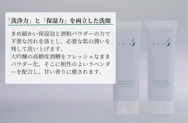 保湿効果の高い2種類の酒粕パウダーと、高品質な手焼き菊炭を高保湿石鹸にブレンドしました。能登の酒粕は糖度が高く、またNMF(天然保湿因子)を多く含んでいます。