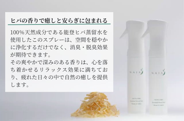 このスプレーは、その歴史ある木の力を活用し、現代の生活空間に古の知恵をもたらすアイテムとして創り上げられました。