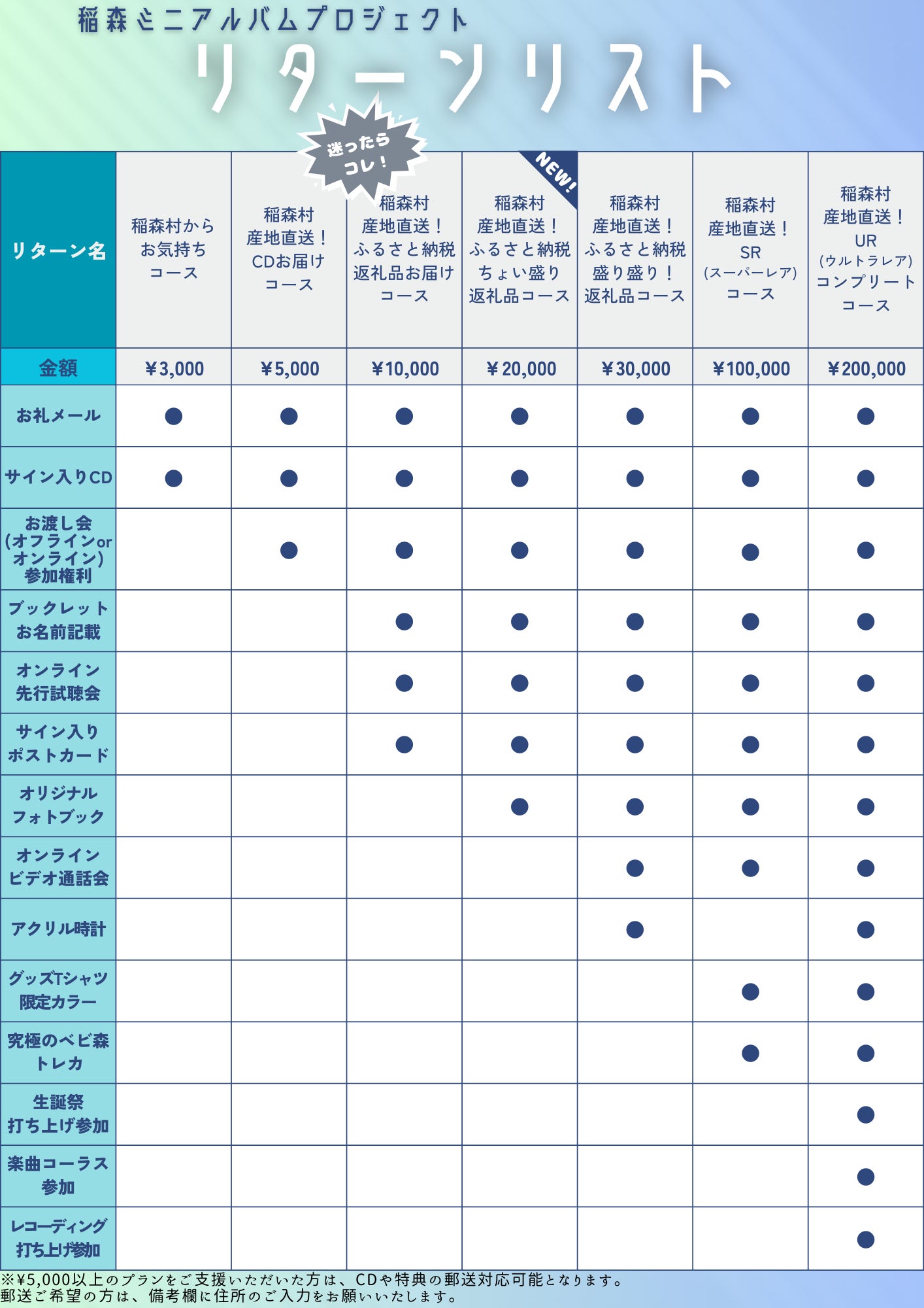 ¥5,000以上のプランをご支援いただいた方は、CDや特典の郵送対応が可能となります。