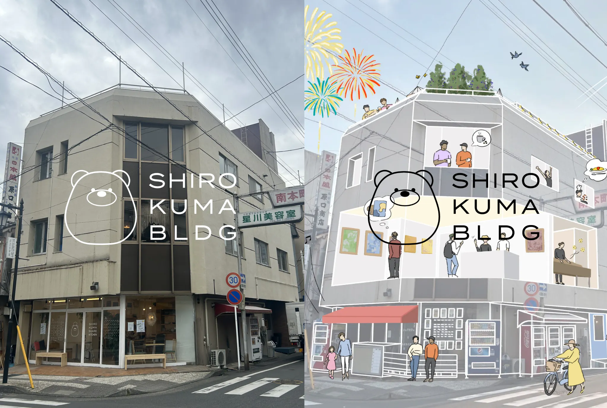 ここは、熊谷駅より徒歩10分の場所にある空きビルをリノベーションした「地域参加型ビル」です。