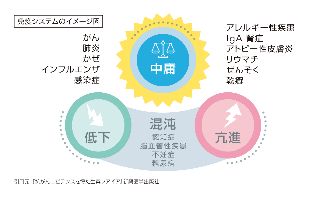それぞれのタンパク質に対して、免疫機能が亢進していれば下げる、低下していれば上げる方法が必要です。