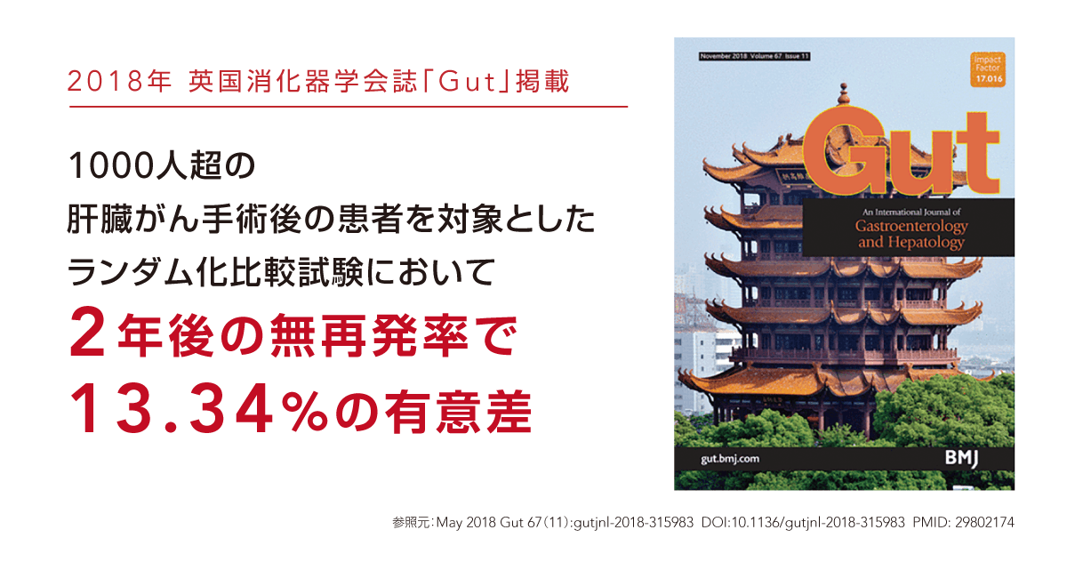 1000人超の肝臓がん手術後の患者を対象としたランダム化比較試験において2年後の無再発率で13.34%の有意差