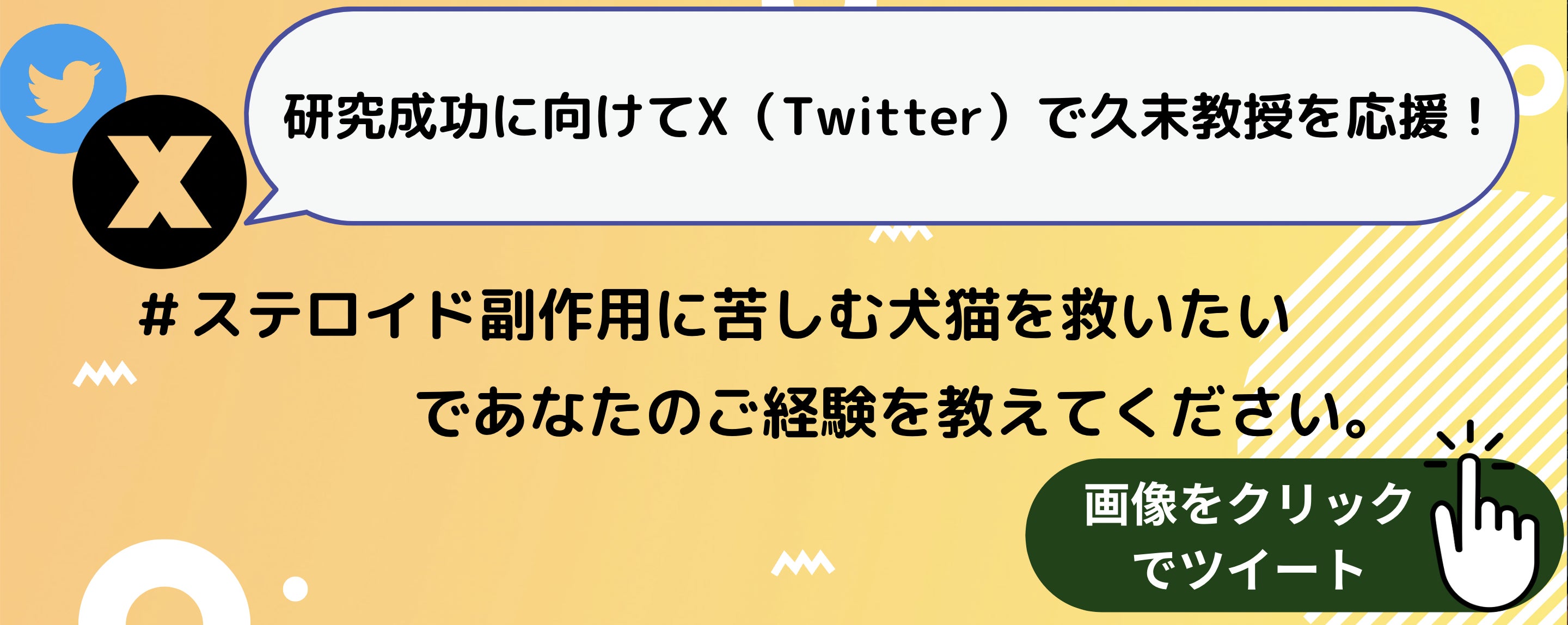 ステロイドの副作用で苦しむ犬猫を救う新たな治療法開発に向けた本プロジェクトへのご支援・ご協力を何卒よろしくお願いいたします。