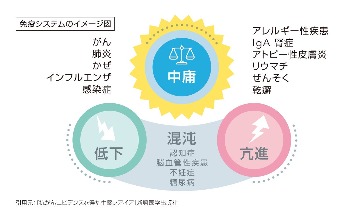 それぞれのタンパク質に対して、免疫機能が亢進していれば下げる、低下していれば上げる方法が必要です。