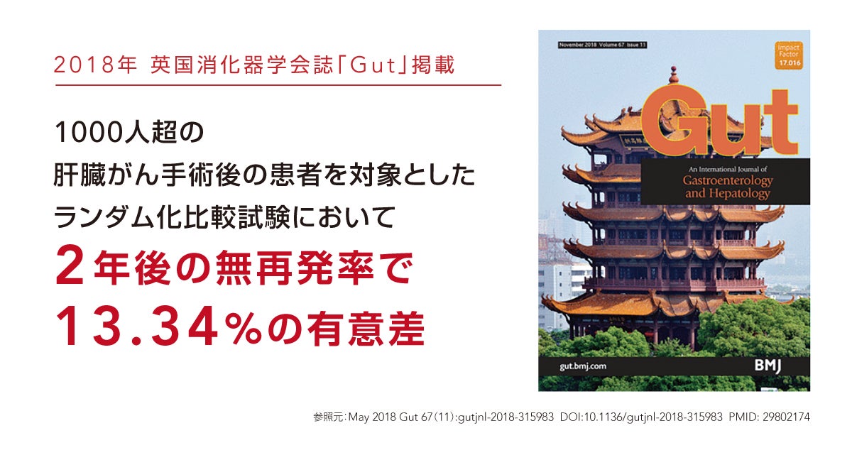 1000人超の肝臓がん手術後の患者を対象としたランダム化比較試験において2年後の無再発率で13.34%の有意差