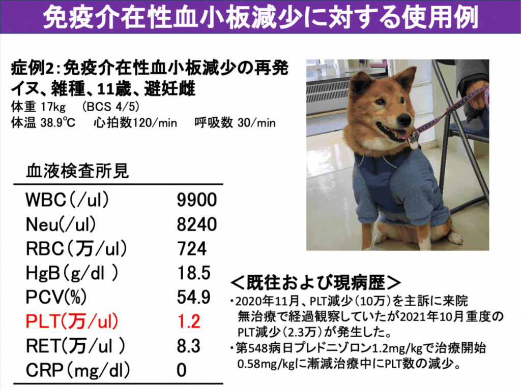 ①免疫介在性血小板減少の犬にフアイア糖鎖TPG-1を使用してステロイドの減薬に成功した一例