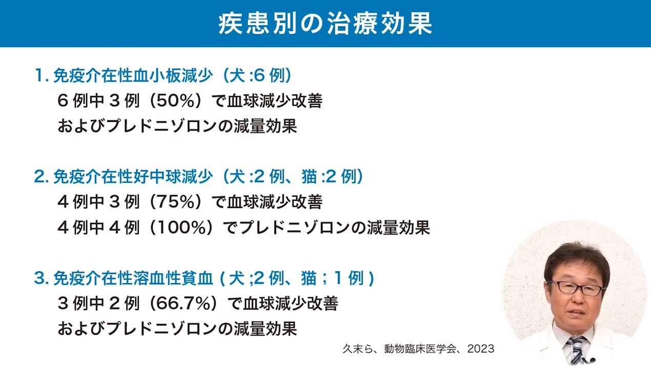 ご支援をいただいた皆様へは、すでにこちらの内容を個別にお送りさせていただいておりますが、今月、麻布大学獣医学部教授の久末正晴先生から発表されたばかりの「ステロイドの減量に成功した症例」を、ご報告させていただきます。獣医師向けに作成された研究発表内容となりますので、一般の方には難しい内容となっておりますが、これらの症例からフアイアの可能性を知っていただき、救われる動物たちが増えることを願っております。