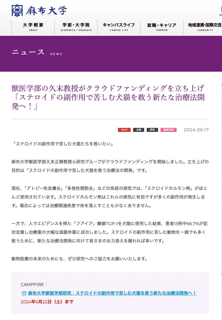 ステロイドの副作用で苦しむ犬猫を救う新たな治療法開発へ!麻布大学 久末正晴先生にインタビュー