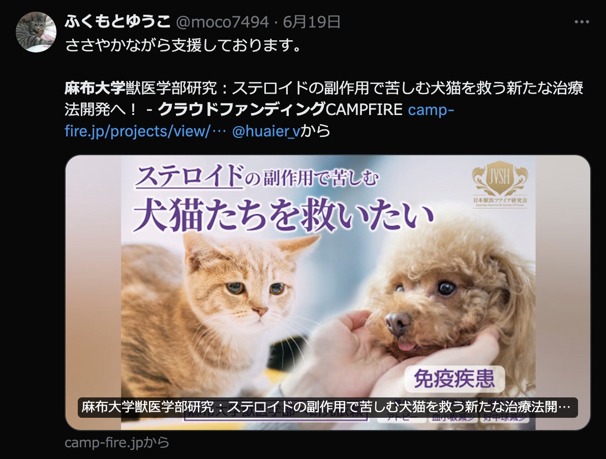 応援シェアやメッセージ、ご支援をたくさんいただいております。