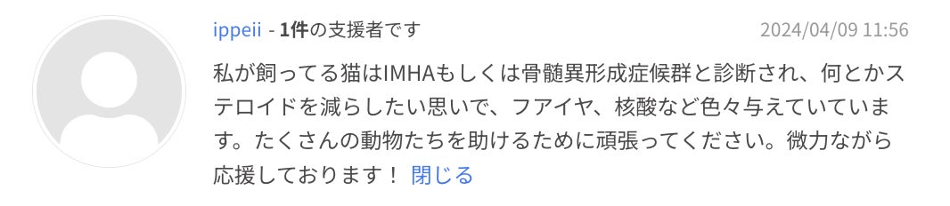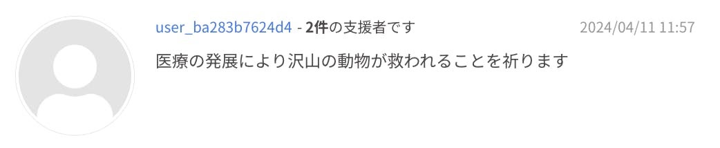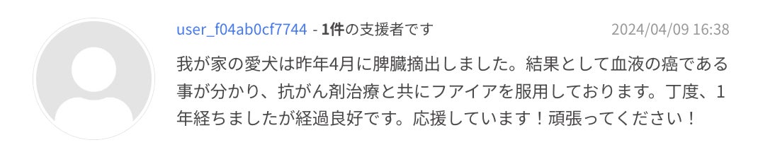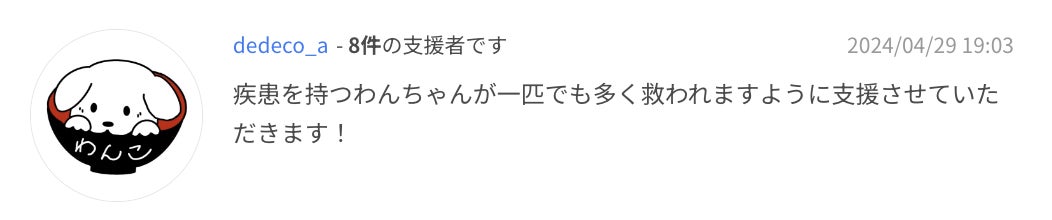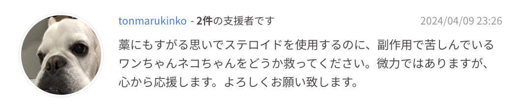↓一般の飼い主様から届いたたくさんのご支援とメッセージの数々