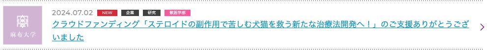 ステロイドの副作用で苦しむ犬猫を救う新たな治療法開発へ向けて取り組んでまいります。