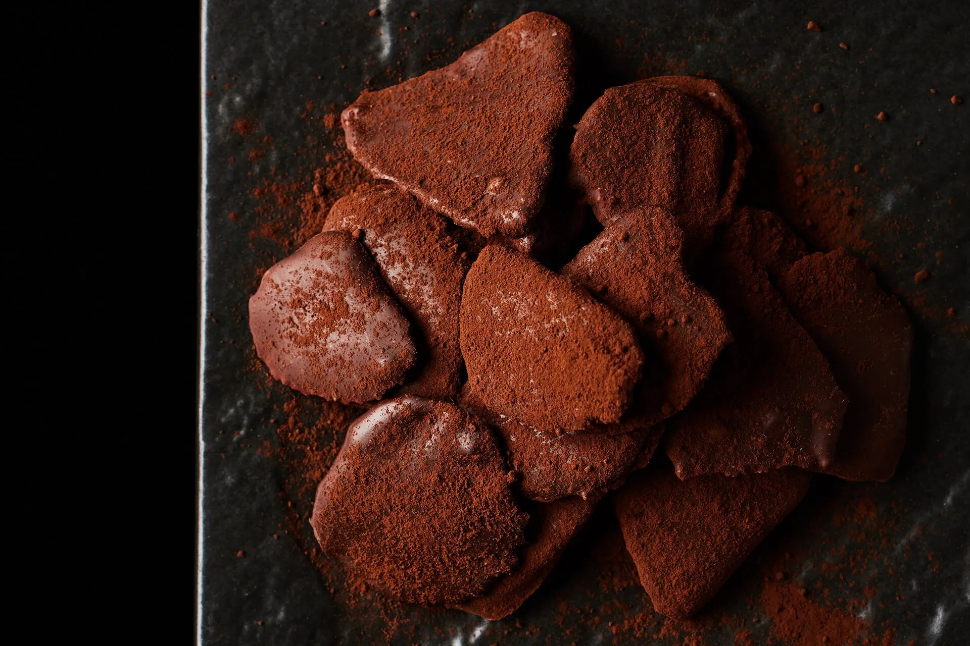 イチゴのドライフルーツを一枚一枚丁寧にクーベルチュールチョコレートでコーティング。